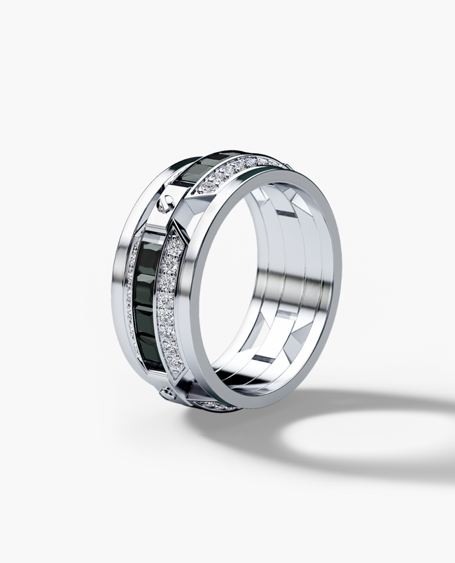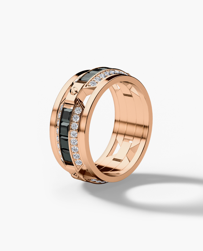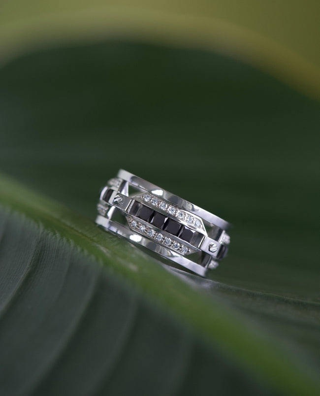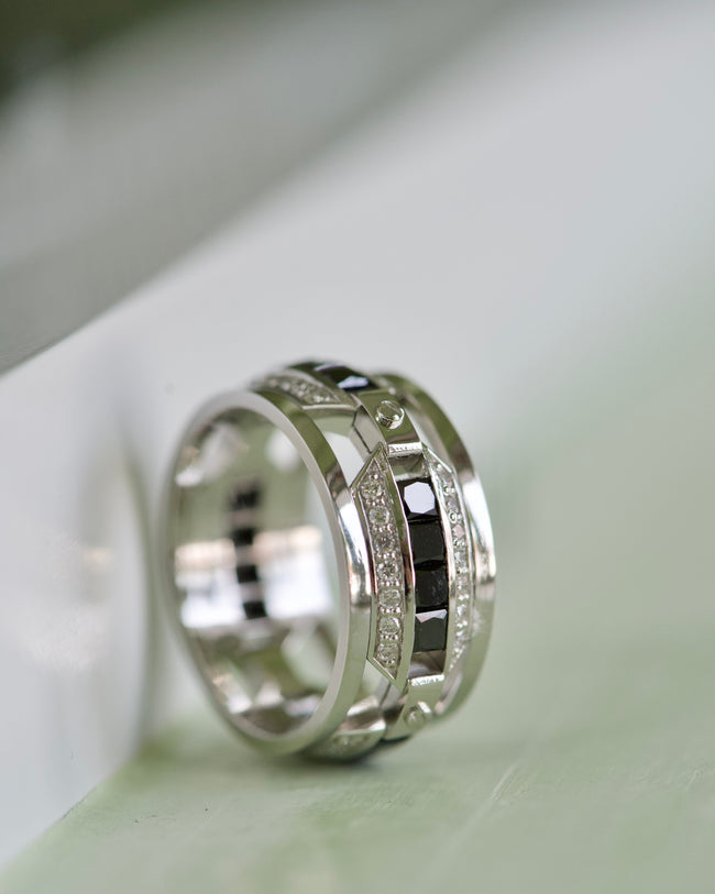 EMINENCE Gold Ring with 2.25ct Black & White Diamonds - Wide Version - 14K Gold