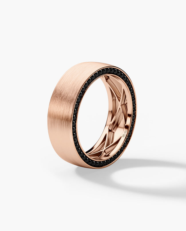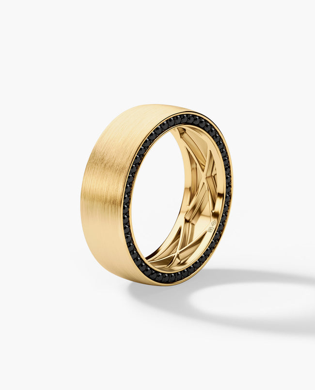 We named our JERRITT men's wedding band after the gigantic gold mine in the state that invented 'Go big or go home.' The opulent JERRITT wedding band is for men of intensity: men who don’t settle for anything less than the exceptional.