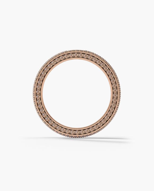 This Rockford ring with 3.30ct brown diamonds from the “American Legend” collection epitomizes sophistication and modern design with a brushed finish in comfort fit gold ring and fiery round diamonds pave set on each profile. The Jerrit band is available in multiple variations and was designed to fit into any situation, from the boardroom to the wedding altar.