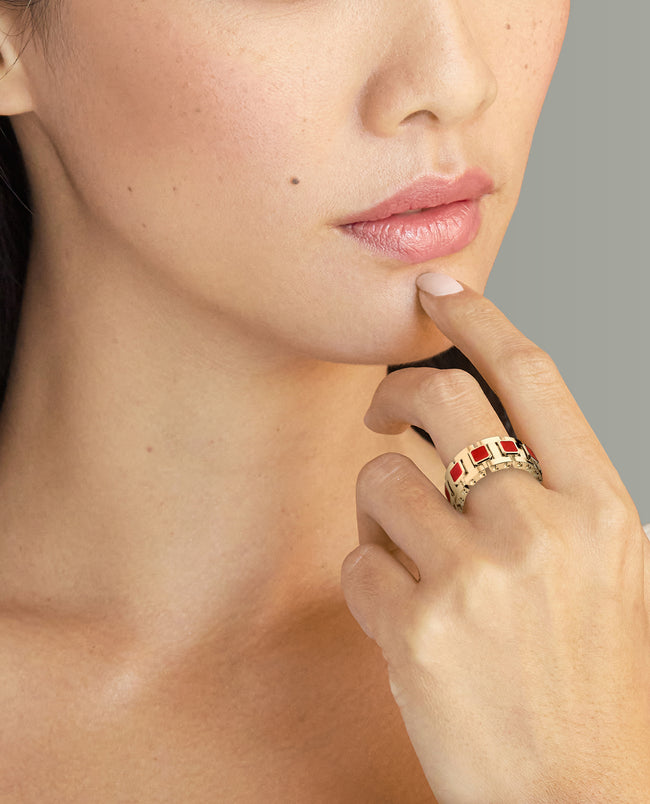 This LA PAZ Gold Ring with Carnelian is a unique variation of the classic LA PAZ design. Crafted from solid gold, this ring design is perfect for adding a touch of classic elegance to any look.