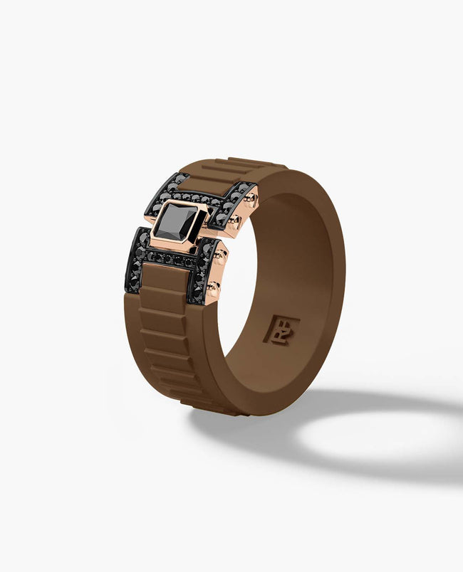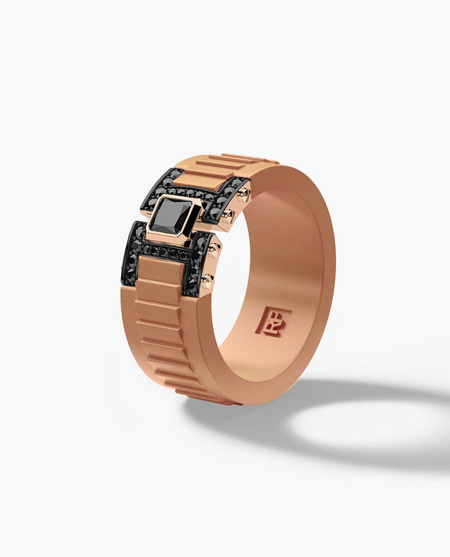 LA PAZ Atomic Silicone & 14k Rose Gold Ring with 0.50ct Black Diamonds