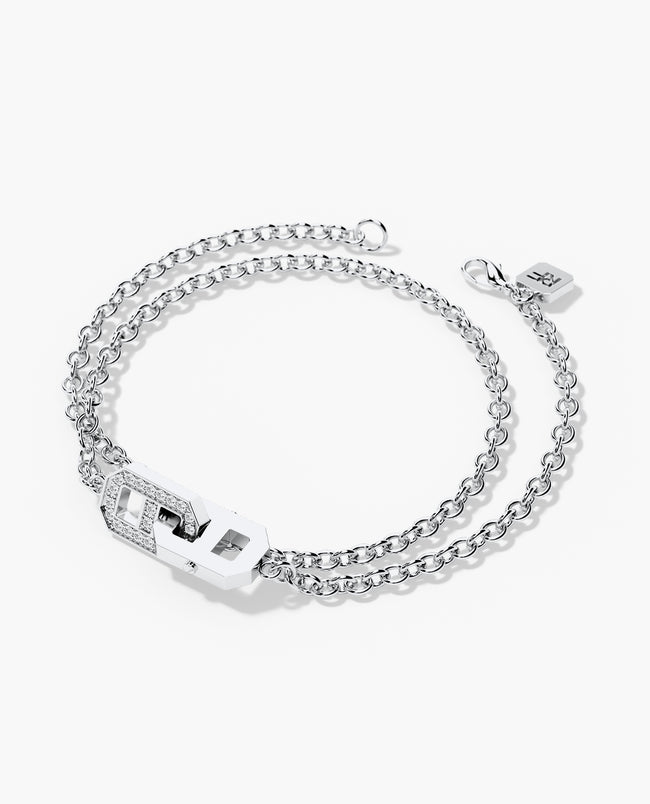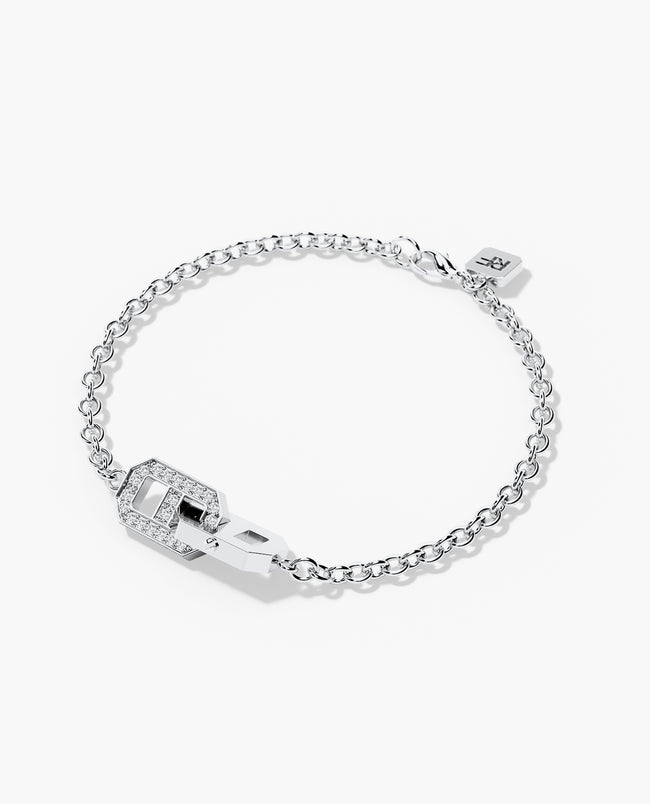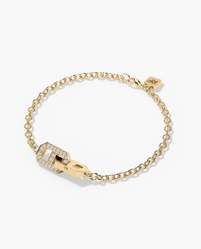 This handmade chain bracelet is available in 14k gold, or 18k gold. Customize your bracelet further by choosing either black or white diamonds.