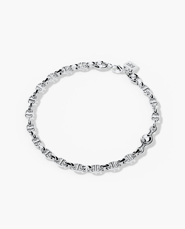 This chain link bracelet is available in 14k gold and platinum. The Anchor Chain Link Bracelet is secured with a custom Rockford clasp.