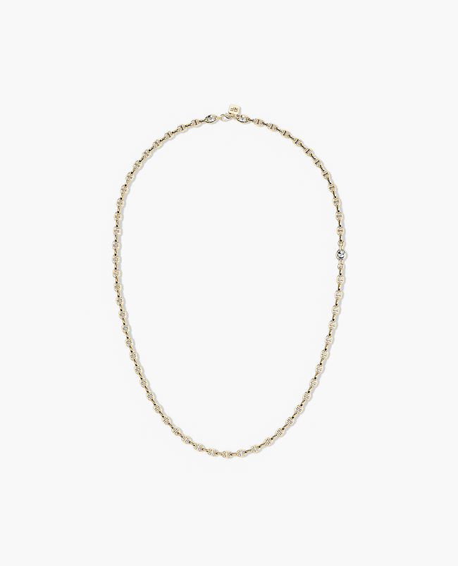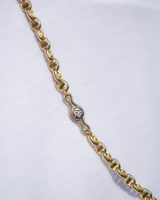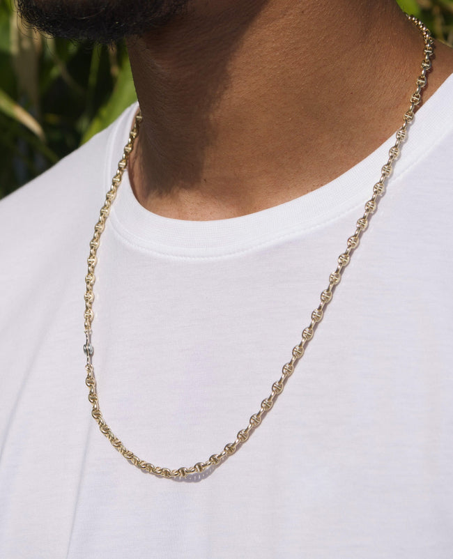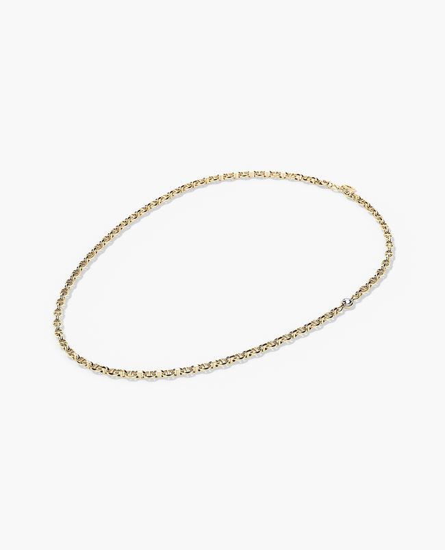 This chain link solid necklace is available in 14k gold and platinum. The Anchor necklace is secured by a custom Rockford clasp.