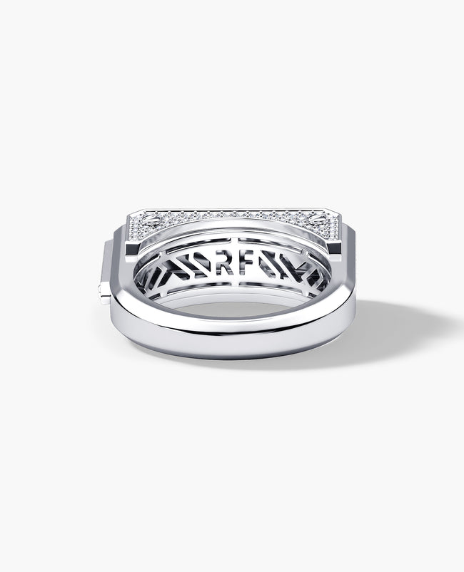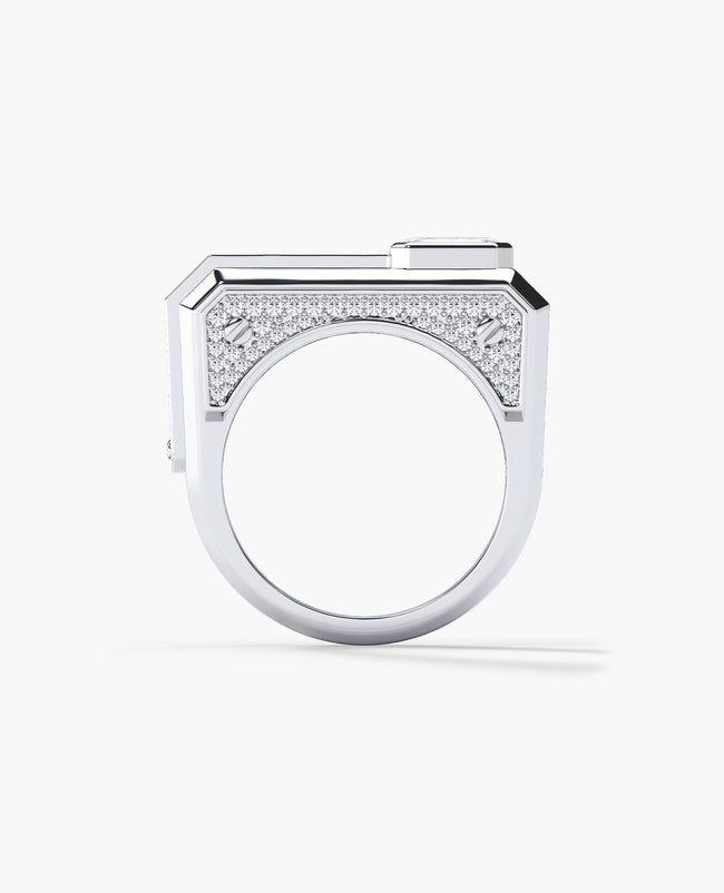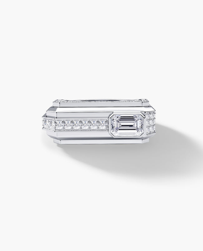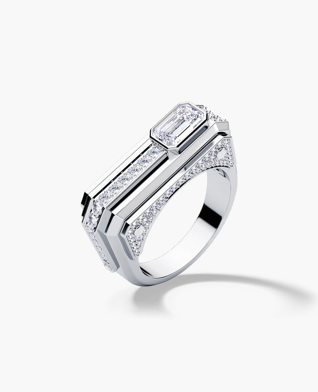 ARTURO Signet Ring is a sculptural masterpiece built for the modern icon. Made in radiant 14k, 18k gold & platinum, this powerful ring fuses architectural precision with refined elegance. The centerpiece: a striking 1.00ct emerald-cut diamond set in a sleek bezel, surrounded by meticulously hand-set pavé diamonds that trace every contour with fire and brilliance. Bold lines. Fearless geometry. A statement that never whispers. This ARTURO ring is proudly designed and hand-made in the USA.