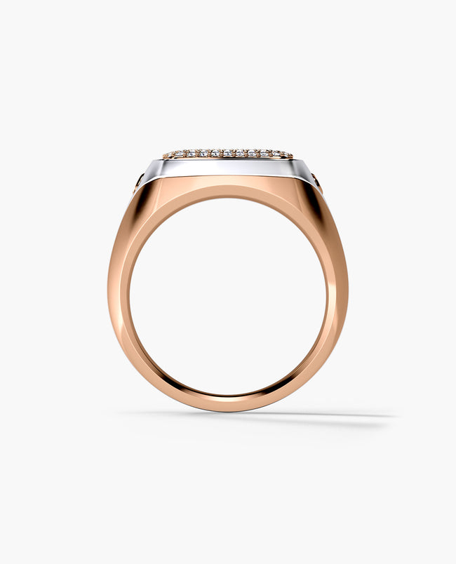 BETZ Two-Tone Gold Signet Ring with 0.70ct Pave Diamonds - Version 1 - 14K Gold