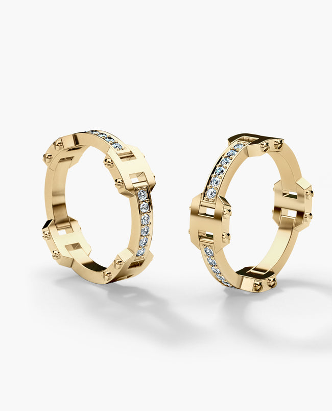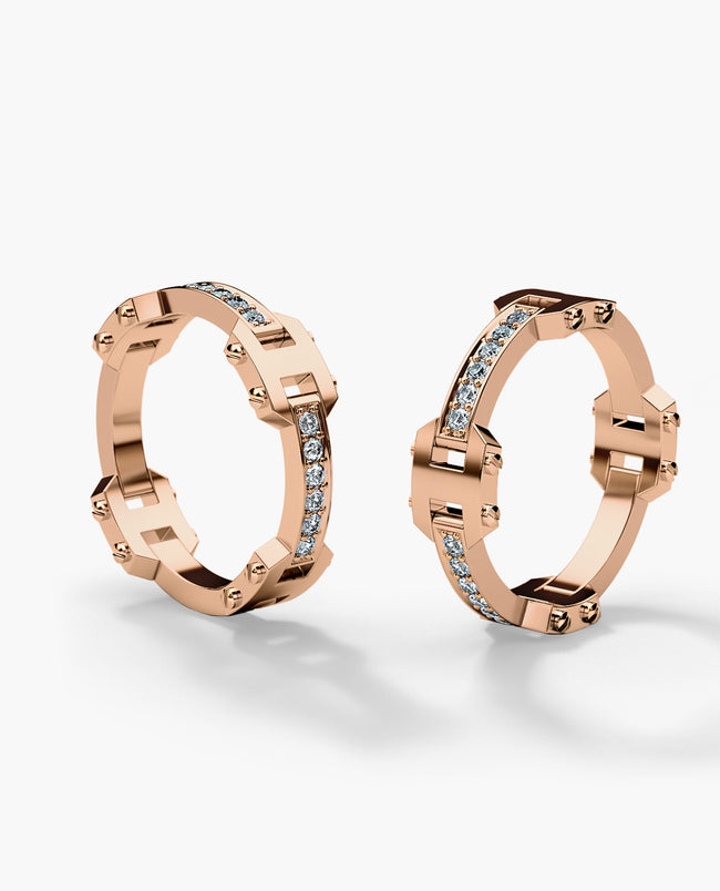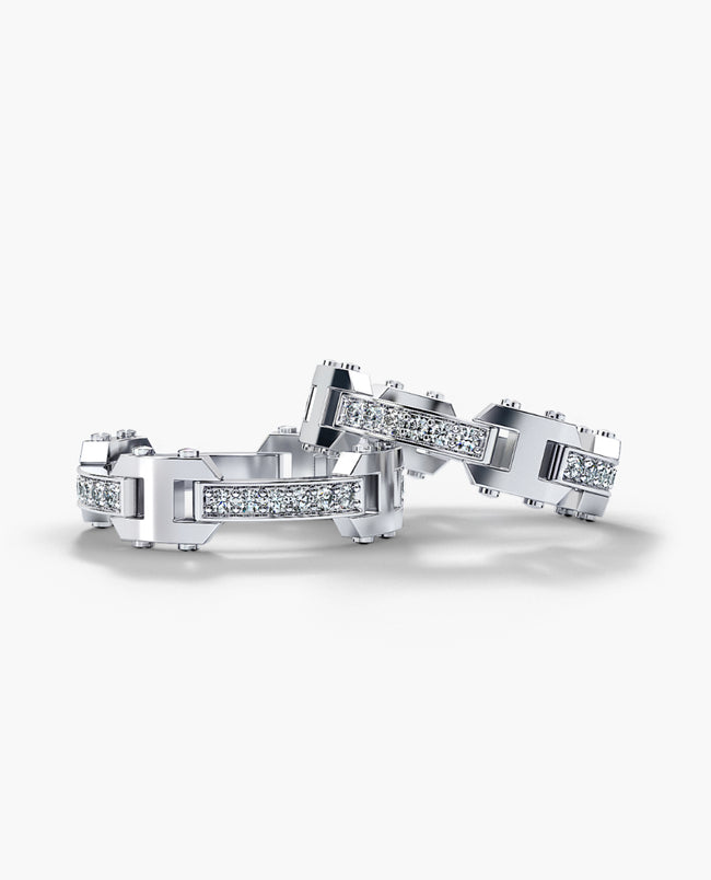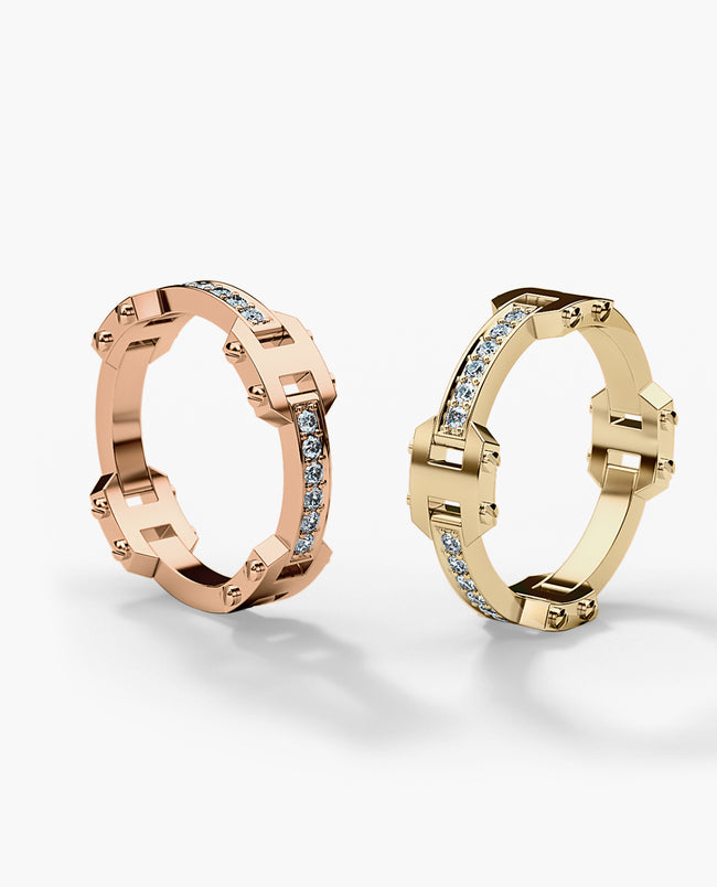 The BOISE ring comes is available in multiple variations, with and without an exciting array of stunning 0.50ct diamonds, encompassing a low profile, yet noteworthy, hand-crafted band. The signature Rockford gold screws on each side bring style and impact to the custom designed band. The BOISE was created for the stylish individual and offers the versatility of a unisex band. This ring provides a comfort fit for everyday wear, either as a wedding band or a statement ring worthy of pairing with a sleek watch or other accessories.