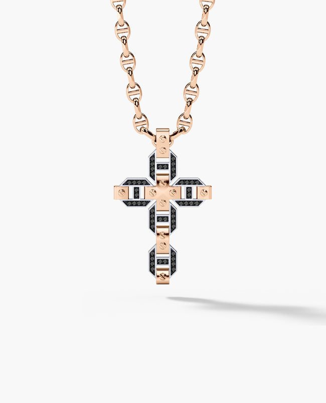 This handmade BRIGGS cross pendant is available in gold and platinum and fully customizable with natural black diamonds and any engraving your bold heart desires.