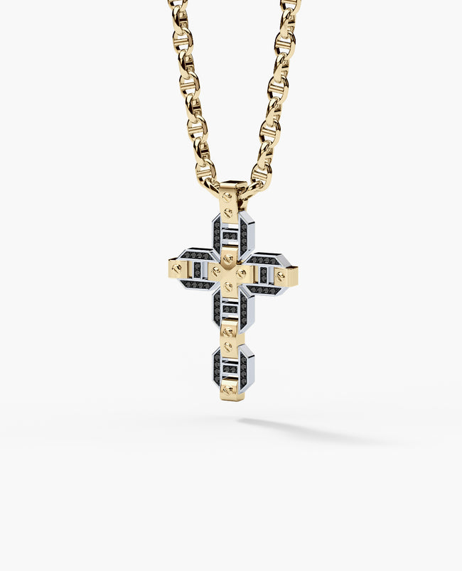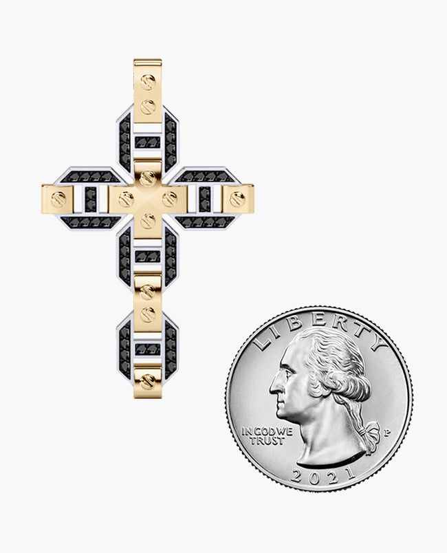 BRIGGS Cross Pendant in Gold with 0.50ct Black Diamonds - 14K Gold