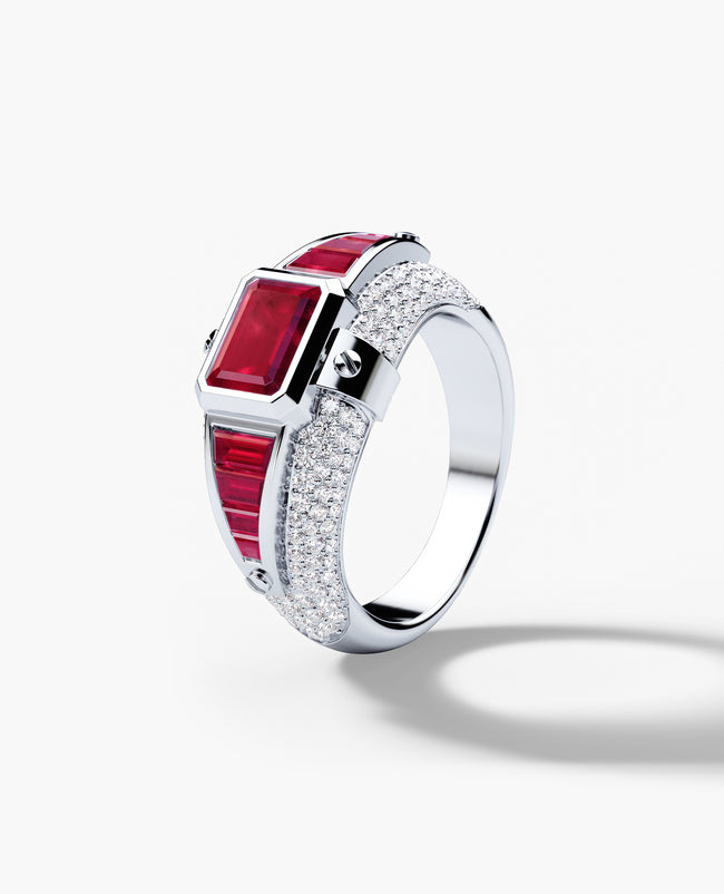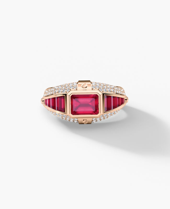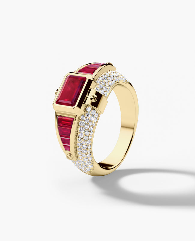 CARLIN Gold Signet Ring with 3.10ct Rubies and Diamonds