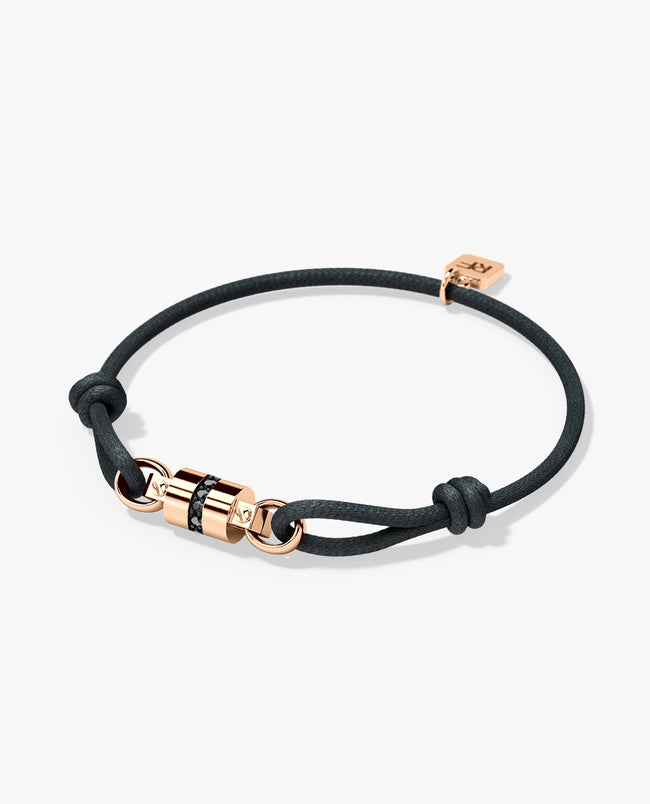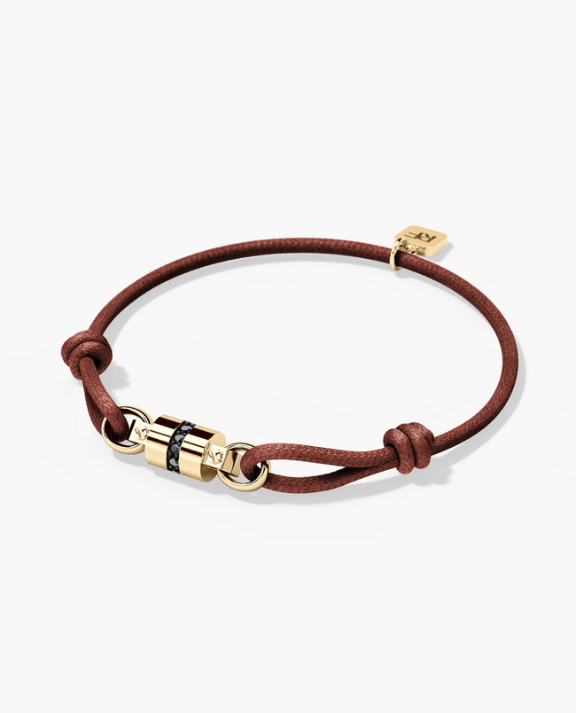 FRANKLIN Cord Bracelet with Gold Charm & 0.17ct Black Diamonds - 14K Gold