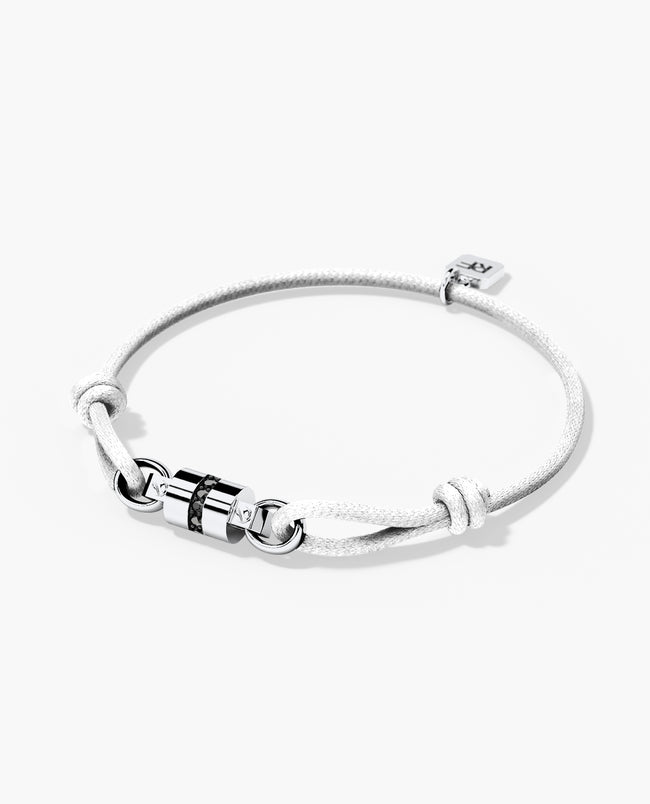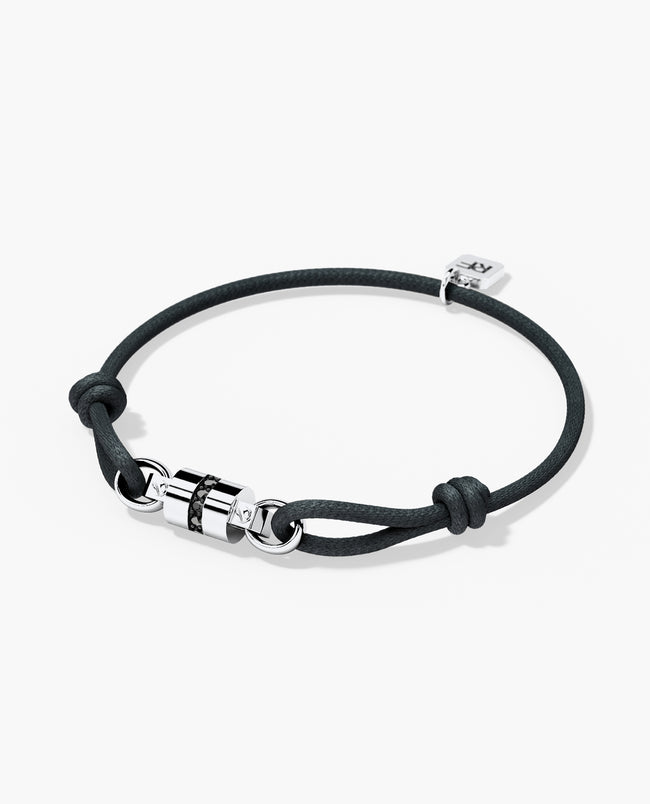 This handmade silk cord bracelet is available in both gold and platinum and is fully customizable with either natural black or white diamonds. Customize your bracelet further by choosing silk cord in a variety of colors.