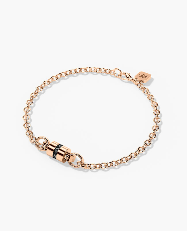 The FRANKLIN gold charm bracelet is the perfect addition to your jewelry collection. Featuring a handmade 14k or 18k gold chain with 0.17ct diamonds, this elegant bracelet is available in either black or white diamonds, and can be customized. Show off your style in a beautiful and timeless way.