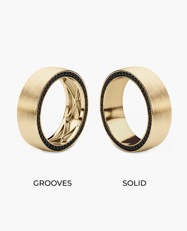 We named our JERRITT men's wedding band after the gigantic gold mine in the state that invented 'Go big or go home.' The opulent JERRITT wedding band is for men of intensity: men who don’t settle for anything less than the exceptional.