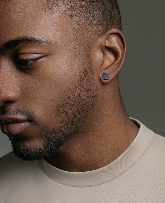 Designed with the iconic LA PAZ ring in mind. Rockford stud earrings are available wiер black diamonds in 18k EverBlak gold.