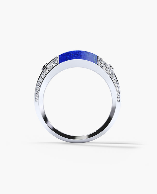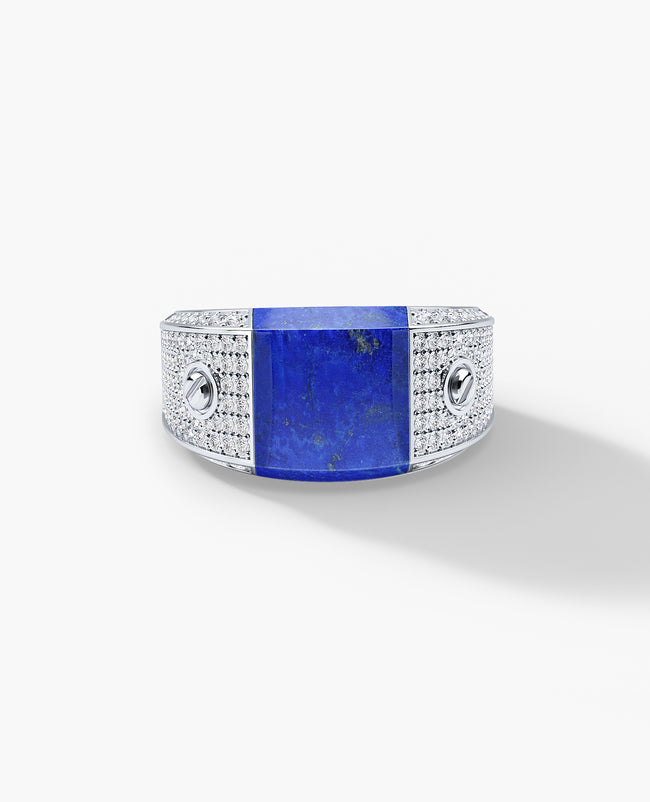 The MONTANA gold signet ring was designed with stunning classic solid gold. It includes a lapis stone as its bold centerpiece aligned smoothly inside the ring. With signature Rockford screws and 1.25ct diamonds, creating the combination of luxury and style in the most elegant way. The ring is built with character as its round curves narrow close to the finger for a comfort fit. The MONTANA ring is perfect for a pinky ring or an everyday style choice.