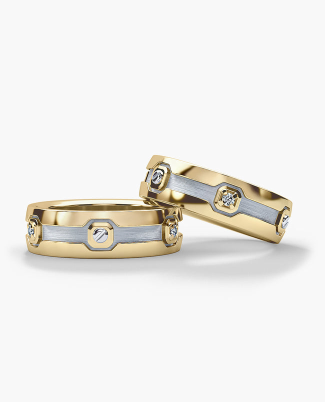 Different to our other rings, the NEWMONT has a sort of cool quietness to it. Available in a combination of precious metals and diamonds, this matching set is built to boost the appeal of a standard ring while catering to the daily needs of a relaxed fit. These rings includes Rockford’s signature screws and reimagined settings, designed for modern lovers to enjoy with any style or occasion. From the wedding altar to the dinner table, the NEWMONT ring fits every occasion.