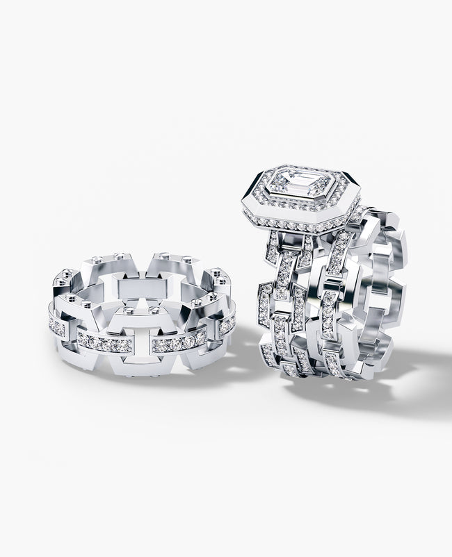 The NORTHSTAR is available in 16 Variations and can customised further still with varying degrees of width, size of diamonds and precious stones.