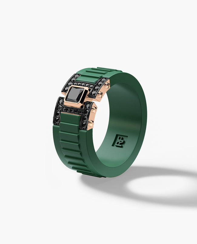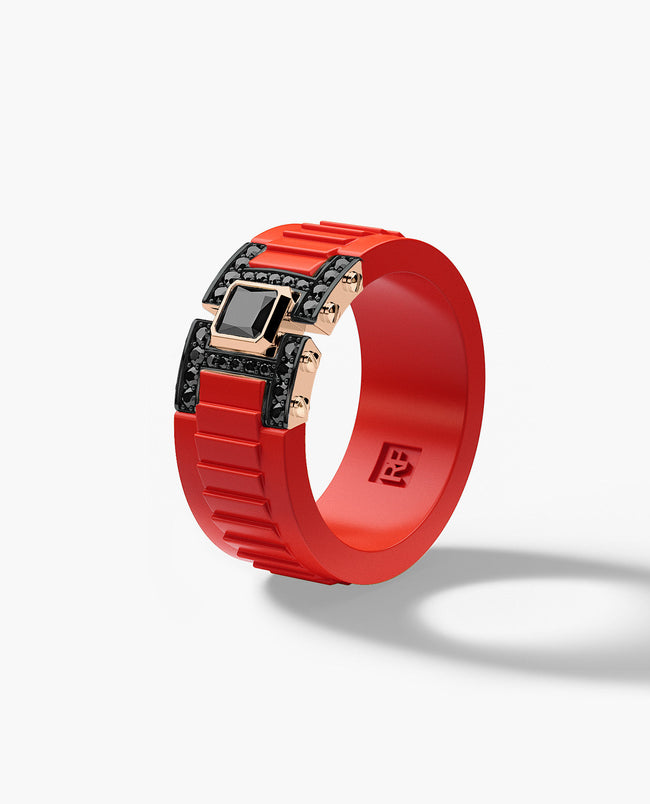 LA PAZ Atomic Silicone & 14k Rose Gold Ring with 0.50ct Black Diamonds