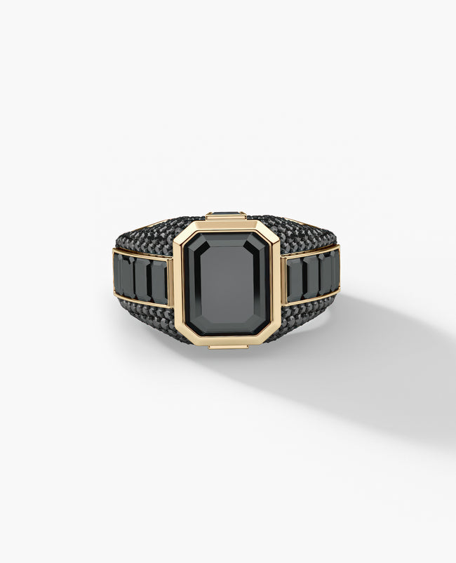 ROCHESTER Gold Signet Ring with 11.30ct Black Diamonds - 14K Gold