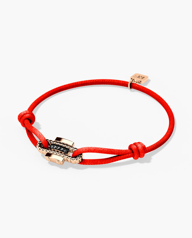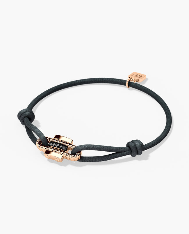 ROPES Cord Bracelet with Gold Charm & 0.05ct Black Diamonds