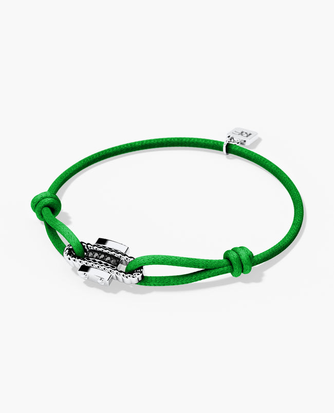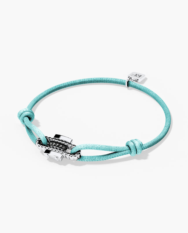 This handmade silk cord bracelet is available in both gold and platinum and is fully customizable with either natural black or white diamonds. Customize your bracelet further by choosing silk cord in a variety of colors.